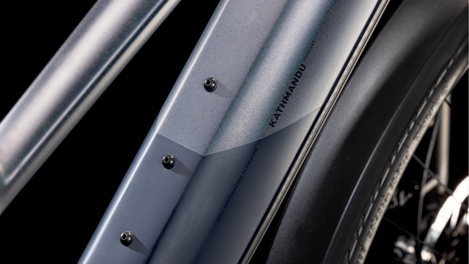 Elegantes, zeitloses Design – das ist das Kathmandu Hybrid von CUBE. Auf den ersten Blick – der zweite gibt den Weg auf jede Menge Innovationen und clevere Details frei. Der samt PowerTube Akku ästhetisch und sauber ins Design integrierte CX Motor von Bosch ist dabei nur der Anfang. Die Efficient Comfort Geometry arbeitet harmonisch mit der 100 mm Federgabel Hand in Hand, was die Kontrolle vor allem unter schwierigen Bedingungen unterwegs optimiert. Dazu die interne Zugverlegung, die der cleanen Optik des Chassis in die Karten spielt und den Wartungsaufwand maßgeblich reduziert. Was noch? Ein vielseitiges, beinahe unzerstörbares UDH für einfache Ersatzteilverfügbarkeit, ein integrierter Kettenschutz und ein stabiler, robuster, überaus formschöner integrierter Gepräckträger IC 3.0, auf dem alles Platz findet, was auf Abenteuertour mit muss.