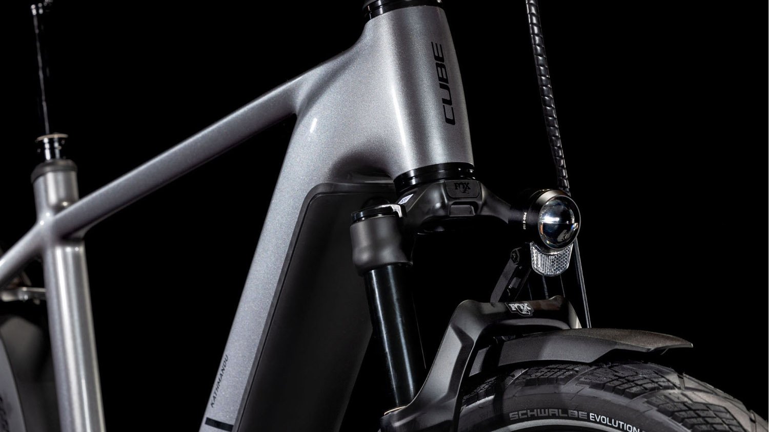 Der Rahmen des CUBE Kathmandu Hybrid sieht auf den ersten Blick vielleicht unspektakulär aus – der zweite enthüllt seine Eleganz, seine Klasse und die vielen Innovationen und cleveren Details. Der samt PowerTube Akku ästhetisch und sauber ins Design integrierte CX Motor von Bosch ist dabei nur der Anfang. Die Efficient Comfort Geometry arbeitet harmonisch mit der 100 mm Federgabel Hand in Hand, was die Kontrolle vor allem unter schwierigen Bedingungen optimiert. Dazu die interne Zugverlegung, die der cleanen Optik des Chassis in die Karten spielt und den Wartungsaufwand maßgeblich reduziert. Was noch? Ein vielseitiges, beinahe unzerstörbares UDH für einfache Ersatzteilverfügbarkeit, ein integrierter Kettenschutz und unser stabiler, robuster, überaus formschöner integrierter Gepräckträger IC 3.0, auf dem alles Platz findet, was auf Abenteuertour mit muss.
