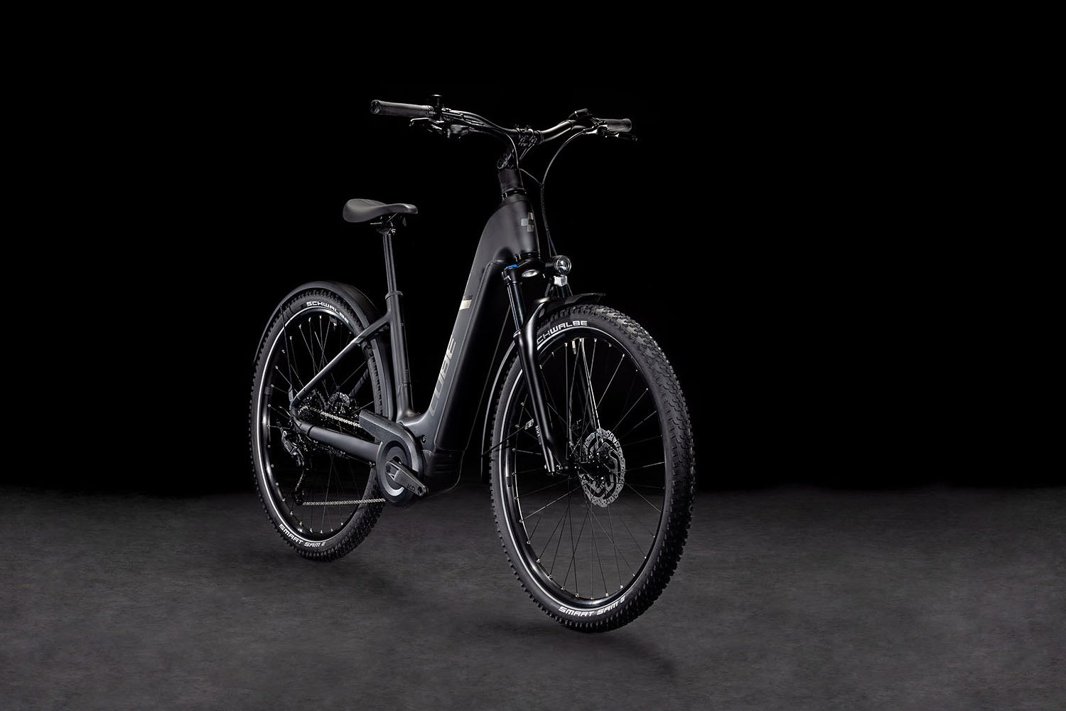 Der Tiefeinsteiger-Rahmen des Nuride Hybrid hält, was sein Name verspricht – einfaches, unkompliziertes Auf- und Absteigen sind damit garantiert. Doch da ist noch mehr: Neben einer Federgabel mit 100 mm Federweg für ein Plus an Fahrkomfort und Kontrolle hat CUBE das Chassis mit großzügiger Reifenfreiheit (sogar inklusive der mitgelieferten Schutzbleche) ausgestattet. Im Inneren verlaufende Züge unterstreichen die cleane Optik des Rahmens und verursachen kaum Wartungsaufwand. Ebenso harmonisch ins Design integriert sind der Bosch CX Antrieb und der PowerTube Akku. Außerdem gibt’s einen Kettenschutz sowie ein UDH für einfachere Ersatzteilverfügbarkeit. Was noch? Serienmäßig verbaute Schutzbleche, Lichter und ein Seitenständer. Da kann das nächste Touren-Abenteuer kommen!