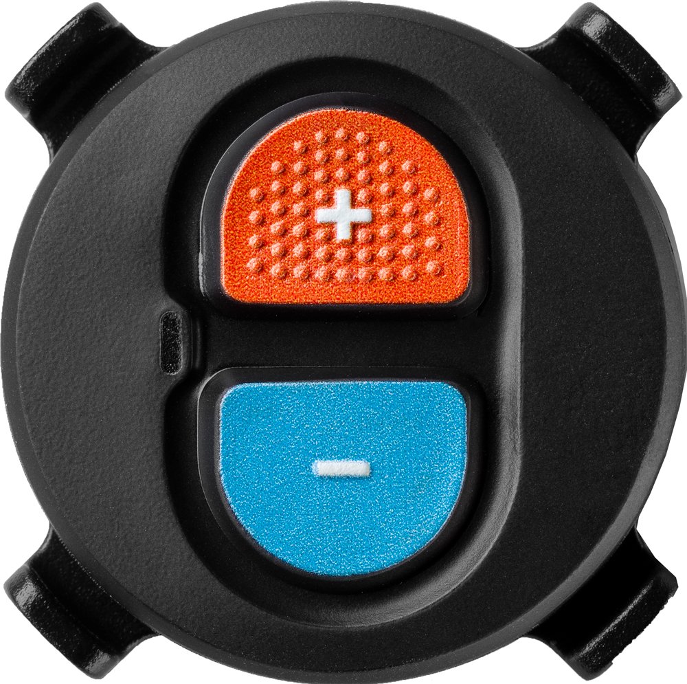 Mit dem Zwift Click, dem Controller von Zwift, kannst du virtuell wechseln und den Widerstand des Heimtrainers einstellen, indem du mit 24 virtuellen Gängen schaltest.