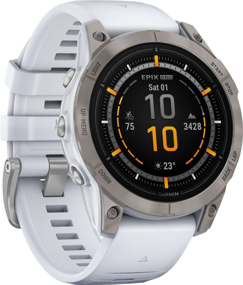 Die epix™ Pro mit brillantem AMOLED Touchdisplay. Die neueste Generation der Multisport-Smartwatch kommt in drei Größen, mit LED-Taschenlampe sowie Trainings- und Gesundheitsfunktionen – für deine beste Performance. Ermittle aus Trainingsbelastung, Erholung, Schlaf und weiteren Gesundheitsdaten deine individuelle Trainingsbereitschaft. Mit dem neuen Hill Score und Ausdauerwert kannst du deine Entwicklung im Bergauflaufen und deine Ausdauerfähigkeit verfolgen.Steigere dich mit über 80 Apps bei jeder Sport- und Outdoor-Aktivität und navigiere dank vorinstallierten, internationalen Karten in jedem Winkel der Erde zuverlässig ans Ziel. Dabei bietet sie eine erstaunliche Akkulaufzeit von bis zu 31 Tage im Smartwatch-Modus und bis zu 58 Std. im GPS-Modus (51mm Modell). Zusammen mit smarten Funktionen wie GarminPay, Garmin Music und Co wird die epix™ Pro zur vielleicht komplettesten Multisport-Smartwatch ihrer Zeit.