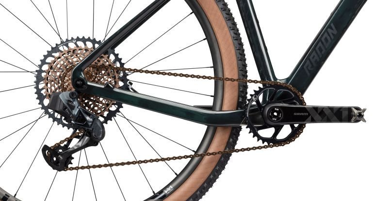 Anfang von allem ist der superbe JEALOUS Carbonrahmen, der mit seinen 950 Gramm Gewicht bei allen technischen Features, die er mitbringt, nur minimal die Waage belastet und in der dunkelgrünen Effektlackierung auch extrem sexy wirkt. An der Front spendet die FOX 32 Float Factory Stepcast Gabel mit ihren 100 mm Federweg viel Komfort und lässt sich perfekt an die Fahrervorlieben anpassen, um immer den nötigen Grip zu generieren. Zudem liefert die golden schimmernde Kashima-Beschichtung neben feinstem Ansprechverhalten auch den nötigen Bling-Bling-Faktor. Das superleichte, handschmeichelnde Cockpit stammt wie die komfortspendende Carbonsattelstütze von Newmen. Um Dich für alle Fälle zu rüsten, spendieren wir dem JEALOUS 10.0 EA eine superschnelle und präzise elektronische Schaltung von SRAM, die XX1 Eagle AXS. Hier kommt alles Gute zusammen: sorglose wie knackige Schaltvorgänge, geringes Gewicht, üppige Übersetzungsbandbreite mit der 10-52 Zähne umfassenden Kassette und die Optik überzeugt auch. Die kupferfarbene Kassette und Kette passen hervorragend zum Kashima-Ton und dem Liquidgreen-Lack des Rahmens. Gebremst wird mit Maguras XC-Flaggschiff MT8SL, das Bremspower und minimales Gewicht perfekt vereint. Komplettiert wird das Race-ready-Paket mit dem Newmen SL X.A.30 Laufradsatz mit leichten wie auch soliden Carbonfelgen, die mit ihren 30 mm Maulweite die Reifen problemlos aufnehmen und in Form bringen. Hier montieren wir das Schnellste, was sich bei Schwalbe finden lässt: die Kombination aus Racing Ray vorne und Racing Ralph hinten in der Addix Speedgrip Gummimischung und mit Super Race Karkasse, zudem mit der stylishen transparent skin Seitenwand. JEALOUS 10.0 EA ist Racing!