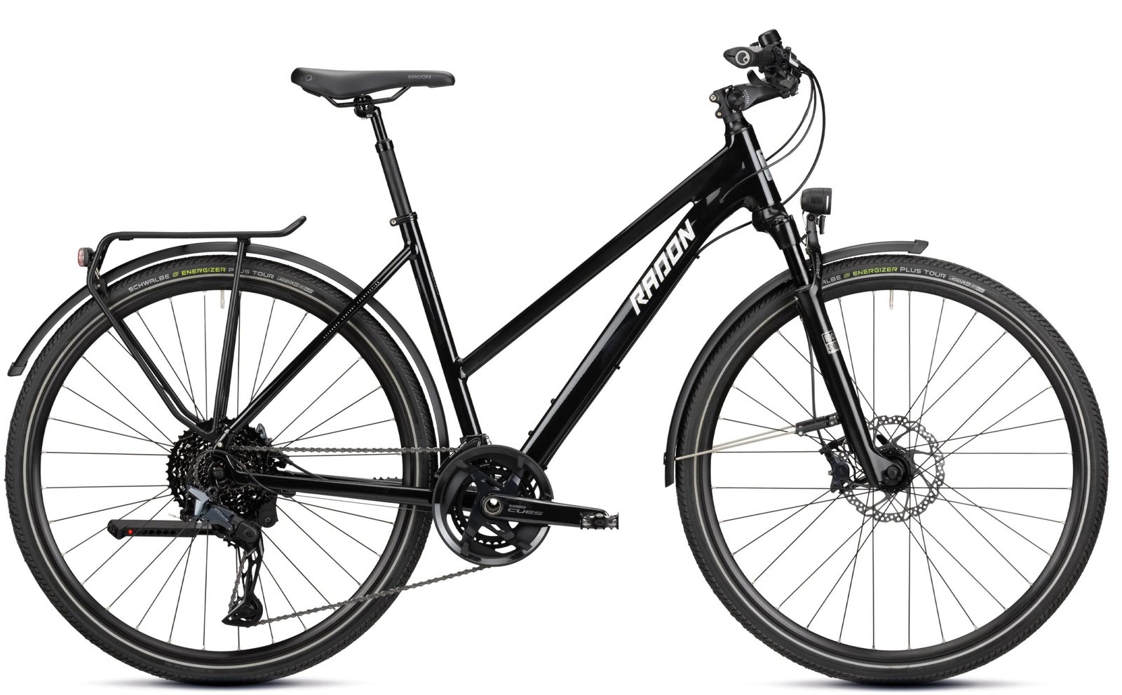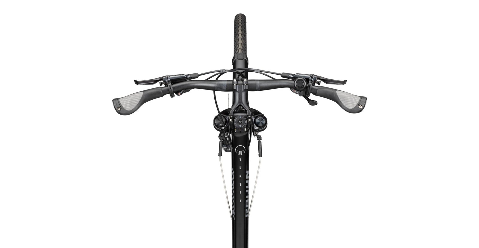 Geringes Gewicht, ein High-End Aluminium Rahmen und hochwertige Ausstattungen – damit stellt das SUNSET das Topmodell unserer Trekkingbikes dar. Sowohl im Alltags- als auch im Freizeitbereich besticht es dabei immer mit großzügigem Komfort durch den Einsatz einer feinfühligen Federgabel und Komponenten, die auch auf langen Touren und Reisen den Fahrer unterstützen, etwa der verstellbare Vorbau mit ergonomischem Lenker und Griffen oder der bequeme Sattel. Alle Modelle sind mit moderner Lichtanlage, Schutzblechen und stabilem Gepäckträger ausgestattet, so dass von regelmäßigen Pendelfahrten bis zum spontanen Overnighter alle Gelegenheiten souverän und zuverlässig abgeritten werden können.