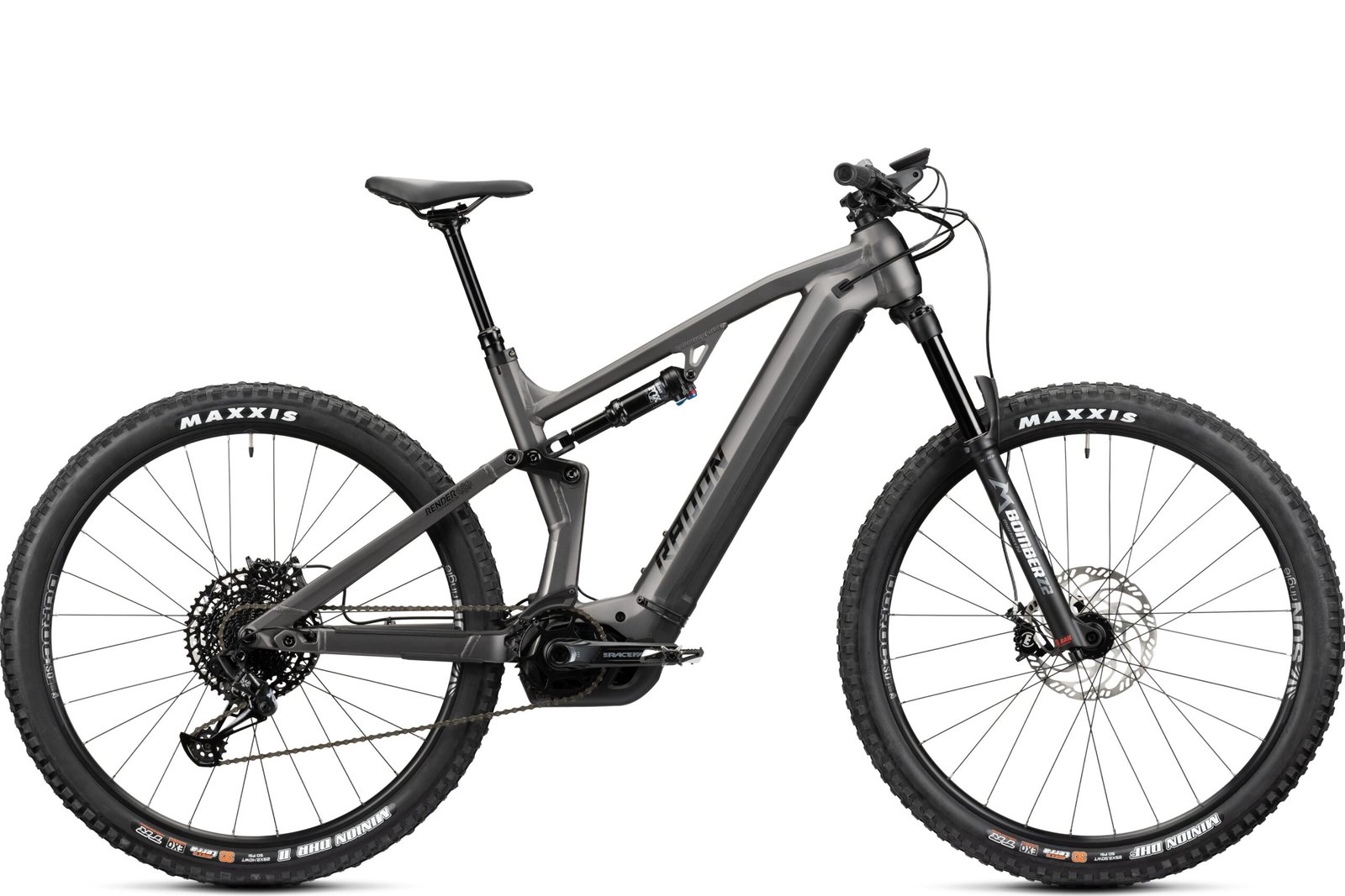 Das RENDER AL markiert den Einstieg in die RADON Pedelec Fully-Welt und bietet mit seinem modernen, hydrogeformten Aluminiumrahmen selbst im Einstiegssegment bereits volle Performance auf dem Trail. Der Alurahmen ist solide und dennoch leicht gehalten, aus Gründen der Gewichtsreduzierung entfällt der aus dem Carbon-Bruder bekannte Flügel und wird durch eine deutlich leichtere, schlanke Dämpferaufnahme unter dem Oberrrohr ersetzt. Der formschöne Rahmen nimmt im Unterrohr den großen 750 Wh Akku auf, der über ein Batteriecover auf der Unterseite leicht zum Laden entnommen werden kann. Alternativ ist der Ladevorgang aber natürlich auch über den externen Ladeport am Sitzrohr mit im Bike verbauter Batterie steuerbar. Die Kabelführung am gesamten Bike ist sehr clean und funktionell, damit keine scheuernden oder klappernden Züge die Freude am Biken trüben. Kinematisch ist das RENDER AL an der bewährten Carbonversion orientiert und wartet mit speziell abgestimmten Federlementen auf.